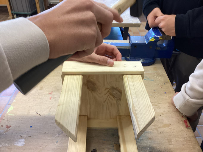 Die erste Gruppe hat in den Bereich Holz hineingeschnuppert. Sie konnten aktiv erleben, wie aus einem unbehandelten Stück Holz unter Anleitung im Laufe des Vormittags eine sehr schöne Garderobenleiste für den Klassenraum entstanden ist.